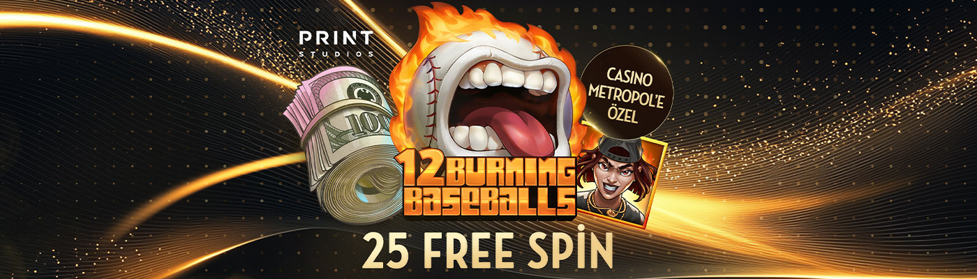 • 12 Burning Baseballs’ta geçerli 25 Free Spin kazanın.